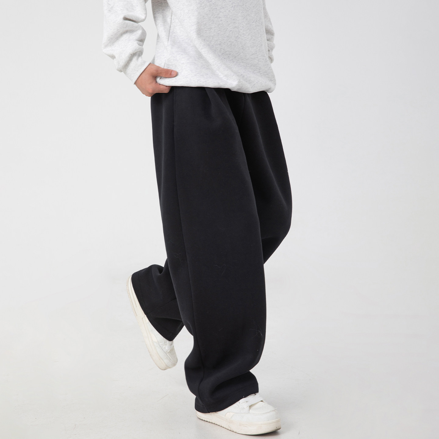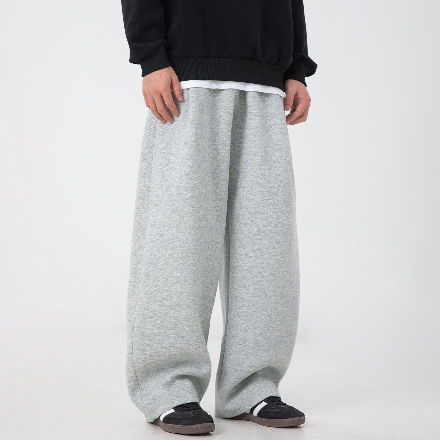 WASSUP潮牌重磅灰色卫裤男2025新款春秋宽松直筒松紧腰休闲弯刀裤
