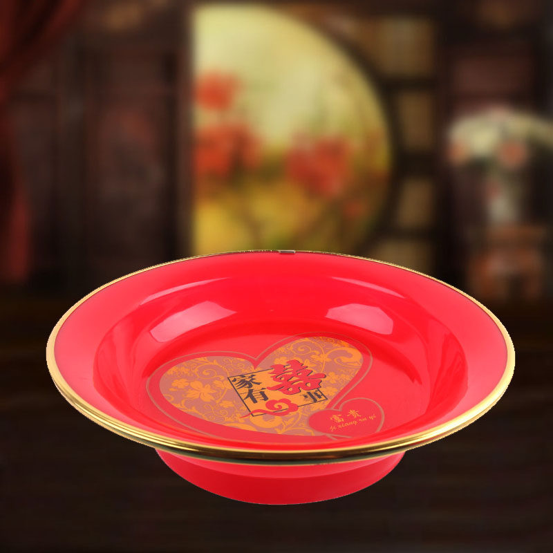 果盘塑料供盘结婚喜庆用品塑料喜盘糖果盘圆盘水果盘家来喜事红盘