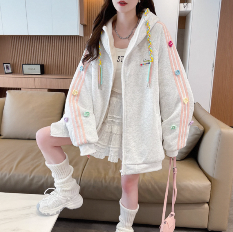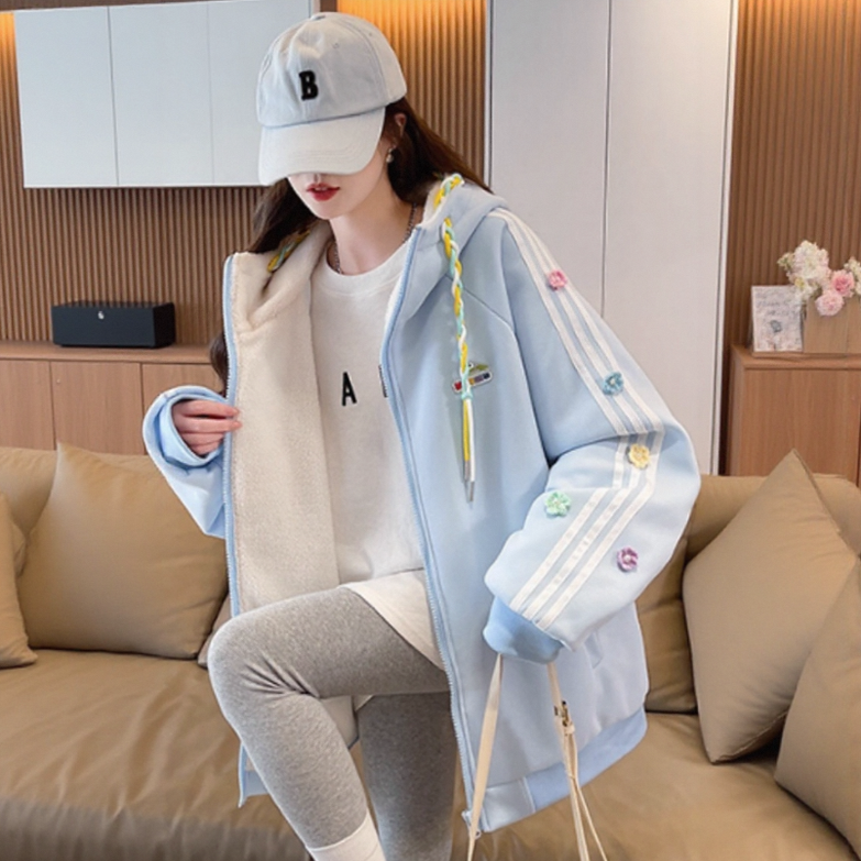羊羔毛连帽卫衣外套女2025秋冬新款宽松加绒加厚学生开衫棒球服潮