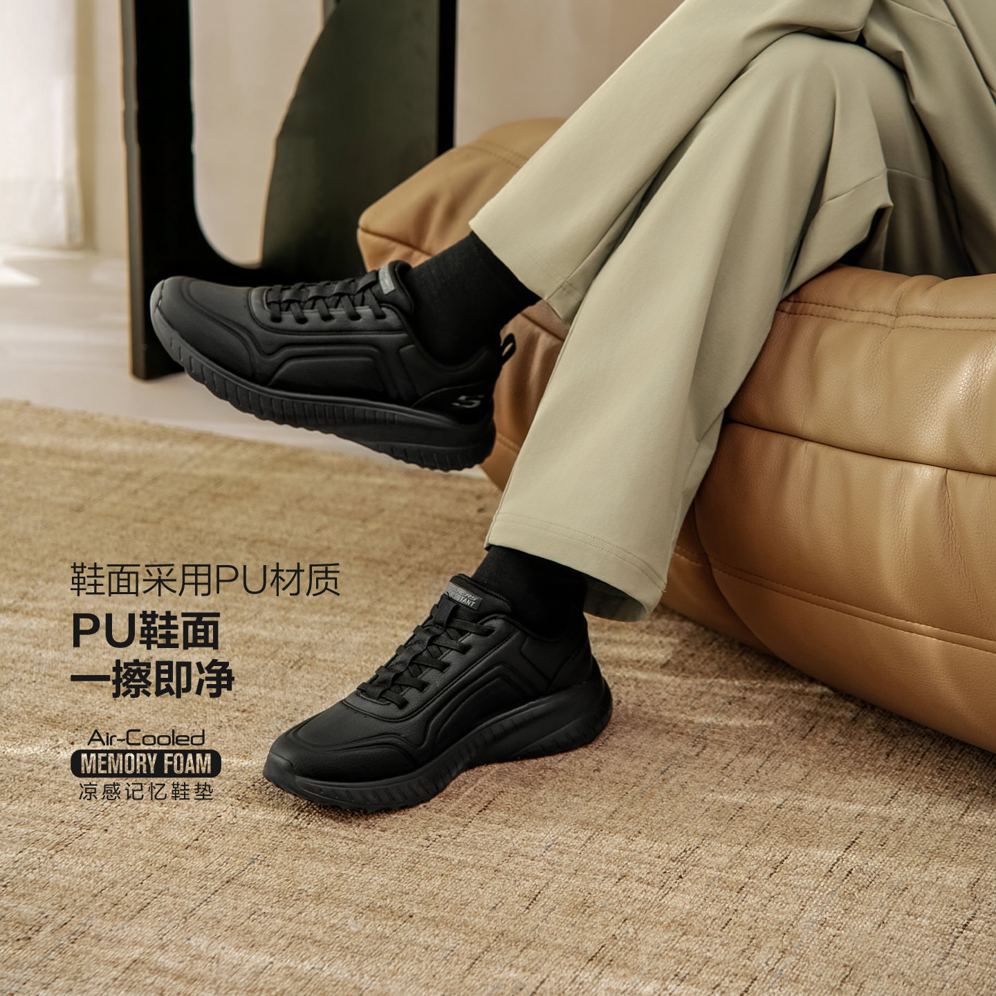 斯凯奇男鞋官方正品2025新款秋季通勤商务休闲皮鞋软底休闲运动鞋