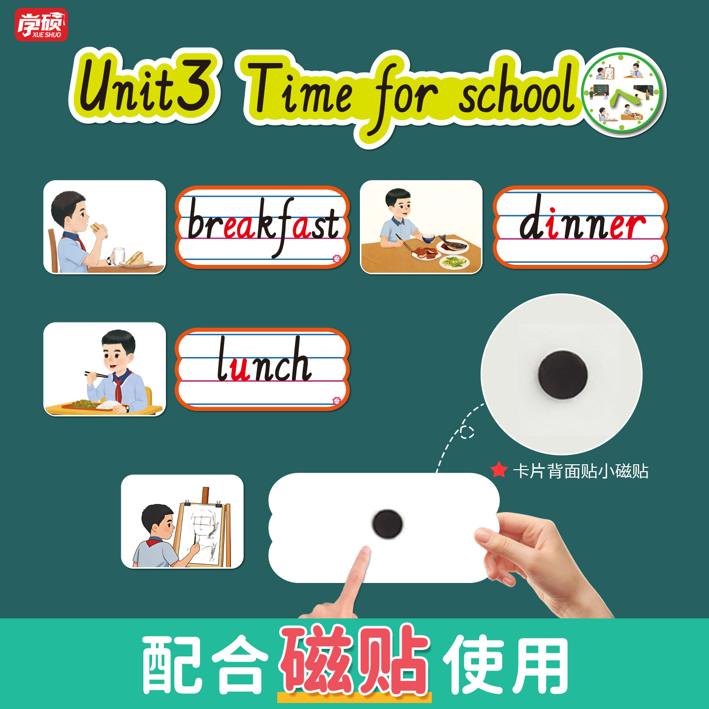 2026新人教版PEP小学英语4四年级下册四线三格单词卡片词图一体句子公开课堂黑板贴板书设计教学教具道具词条