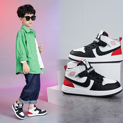 巴布豆儿童板鞋男防滑耐磨高帮鞋