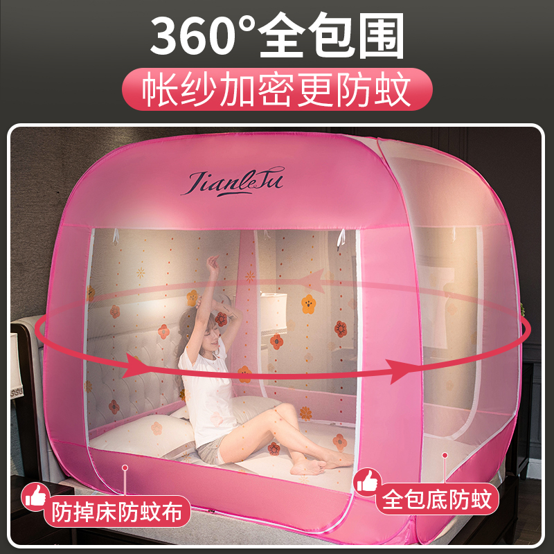 免安装蒙古包蚊帐家用1.8m床1.5m防摔儿童1.2全封闭拉链式纹账2米