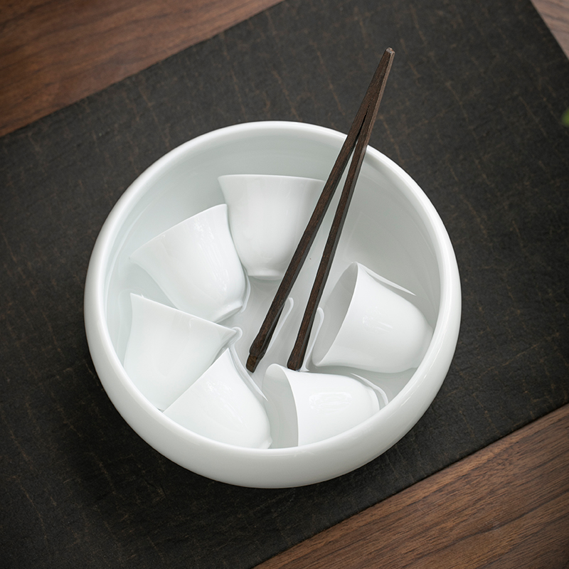 德化窑白瓷茶洗白色陶瓷笔洗茶具配件水洗废水盂大号杯洗茶碗大号