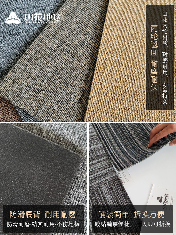 山花地毯方块拼接商用现代办公室酒店宾馆卧室满铺会议室纯色地毯