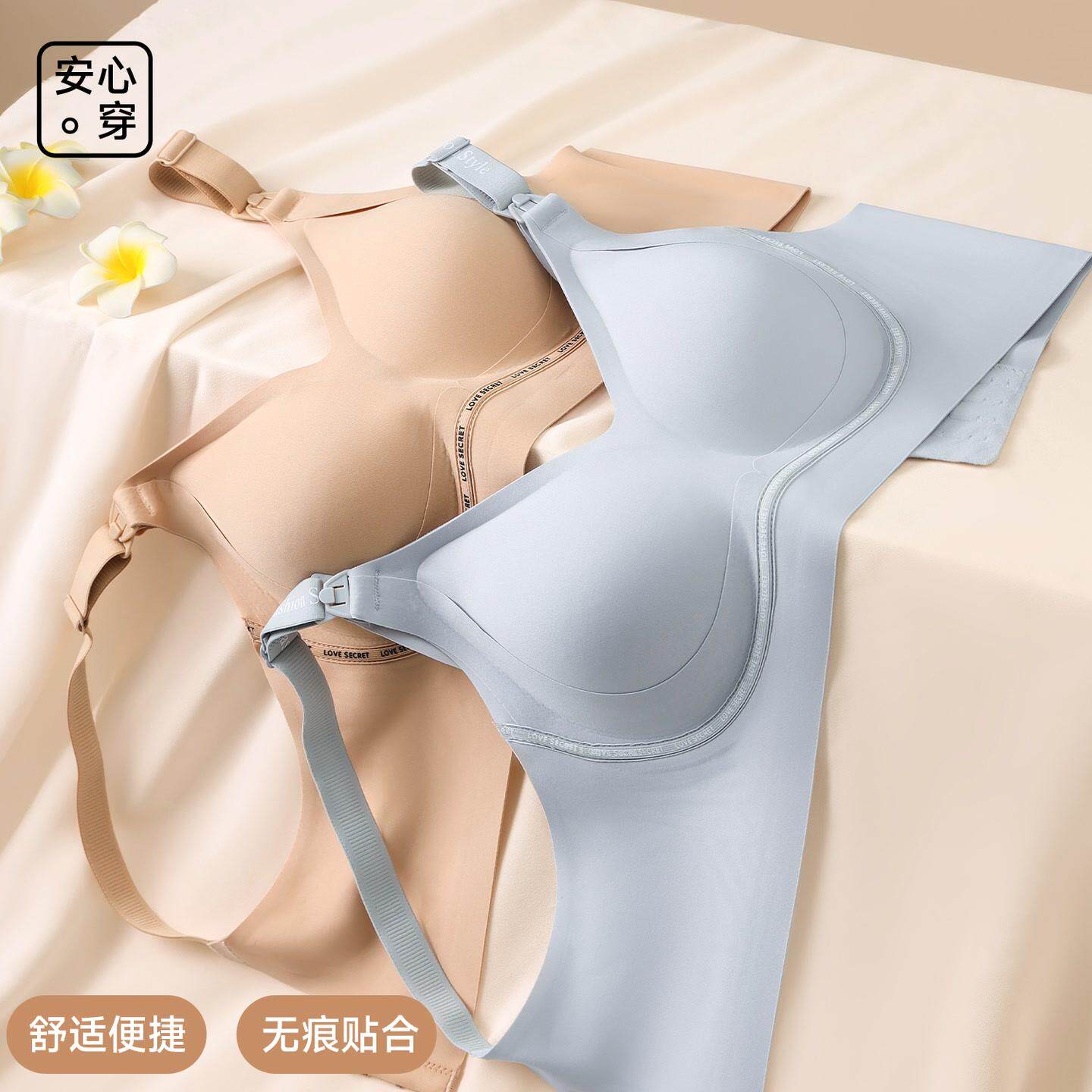 曼娜莎2件装秋冬新款聚拢防下垂内衣无钢圈孕妇上开扣哺乳文胸