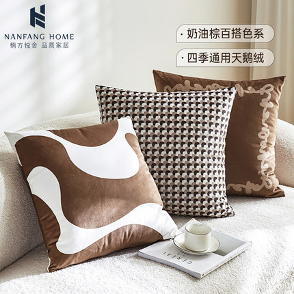 奶油色高级打结抱枕套沙发床上棕色床上腰靠枕靠垫含芯飘窗复古风