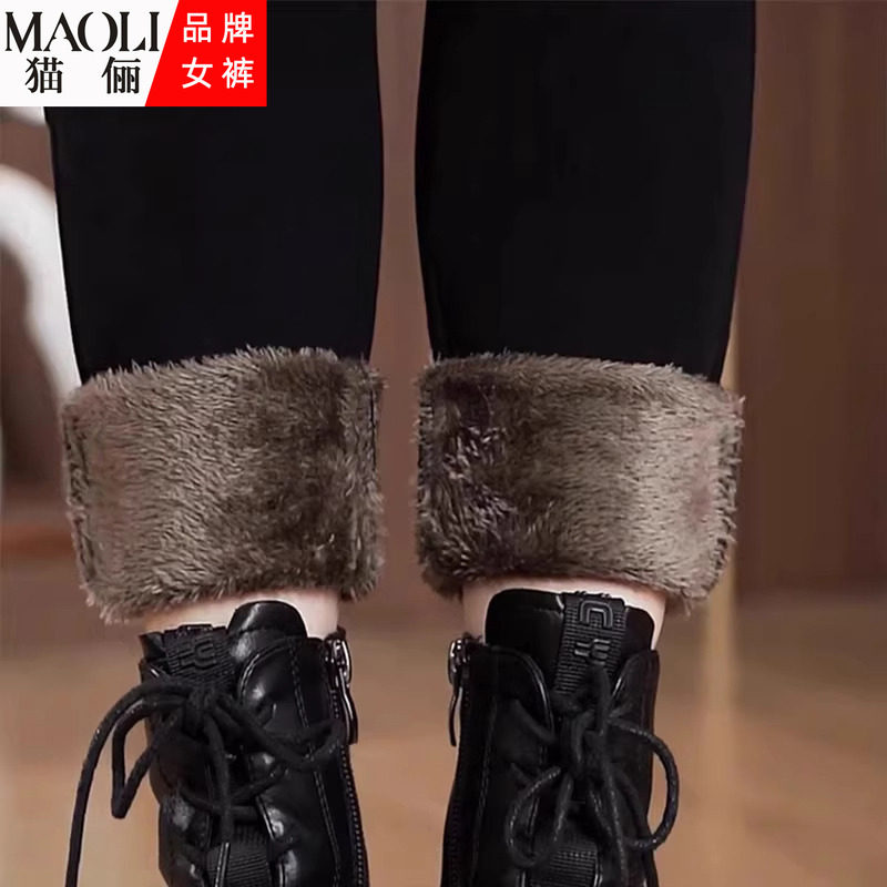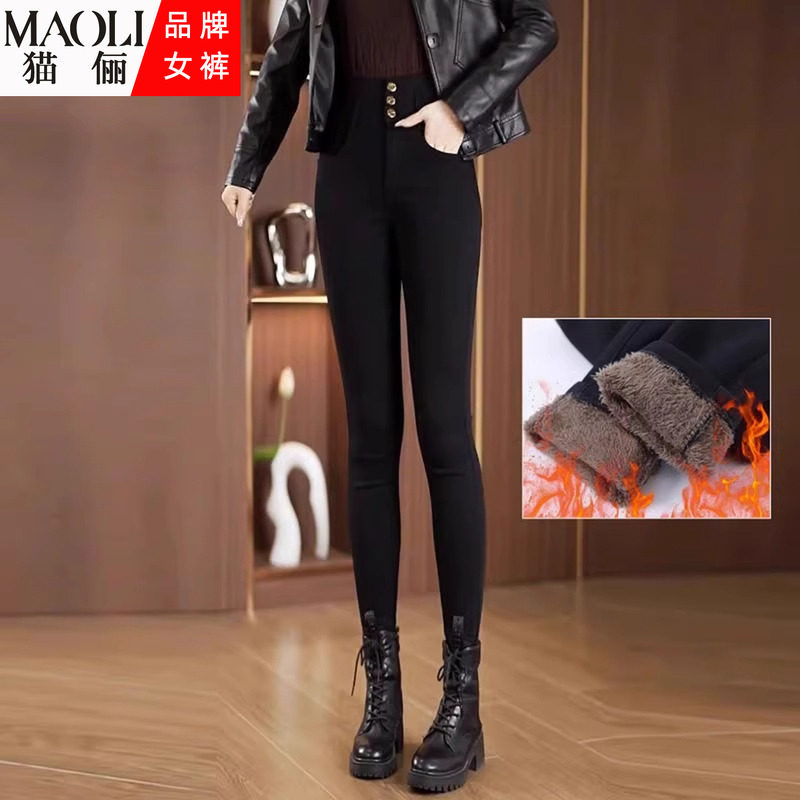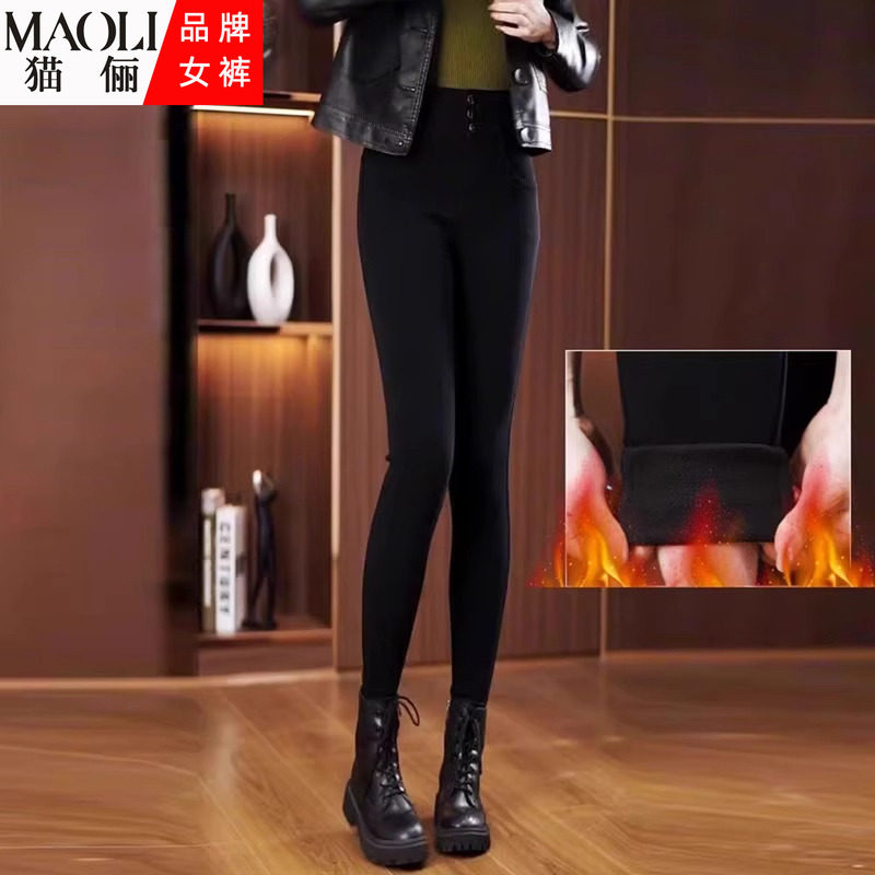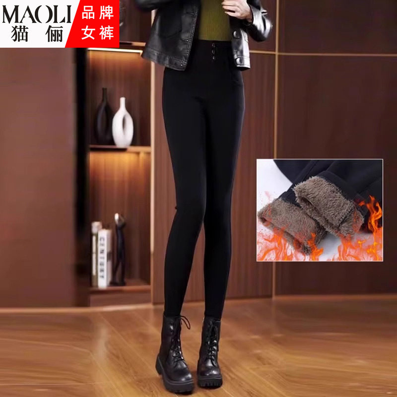 猫俪加绒加厚高腰小脚保暖打底裤