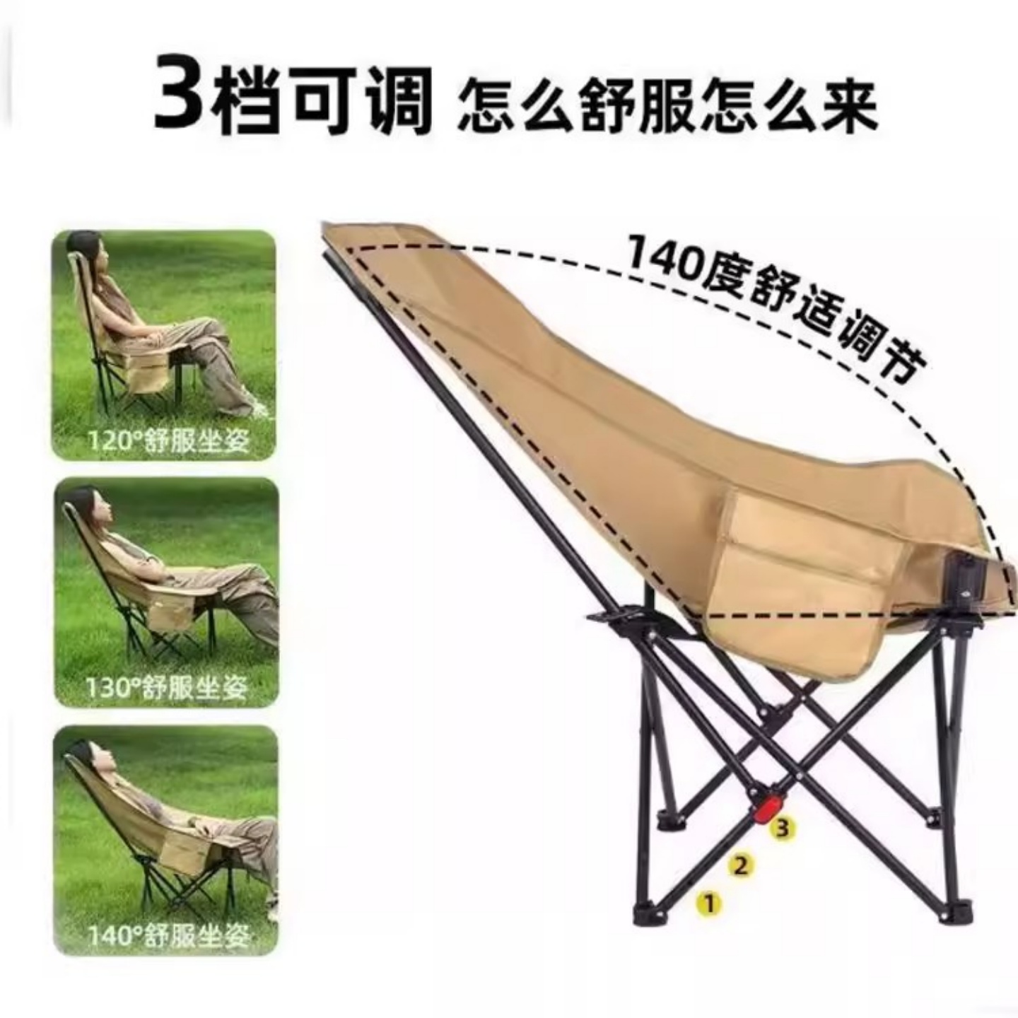 户外月亮椅坐躺两用椅三档调节躺椅钓鱼便携式午休露营沙滩折叠椅