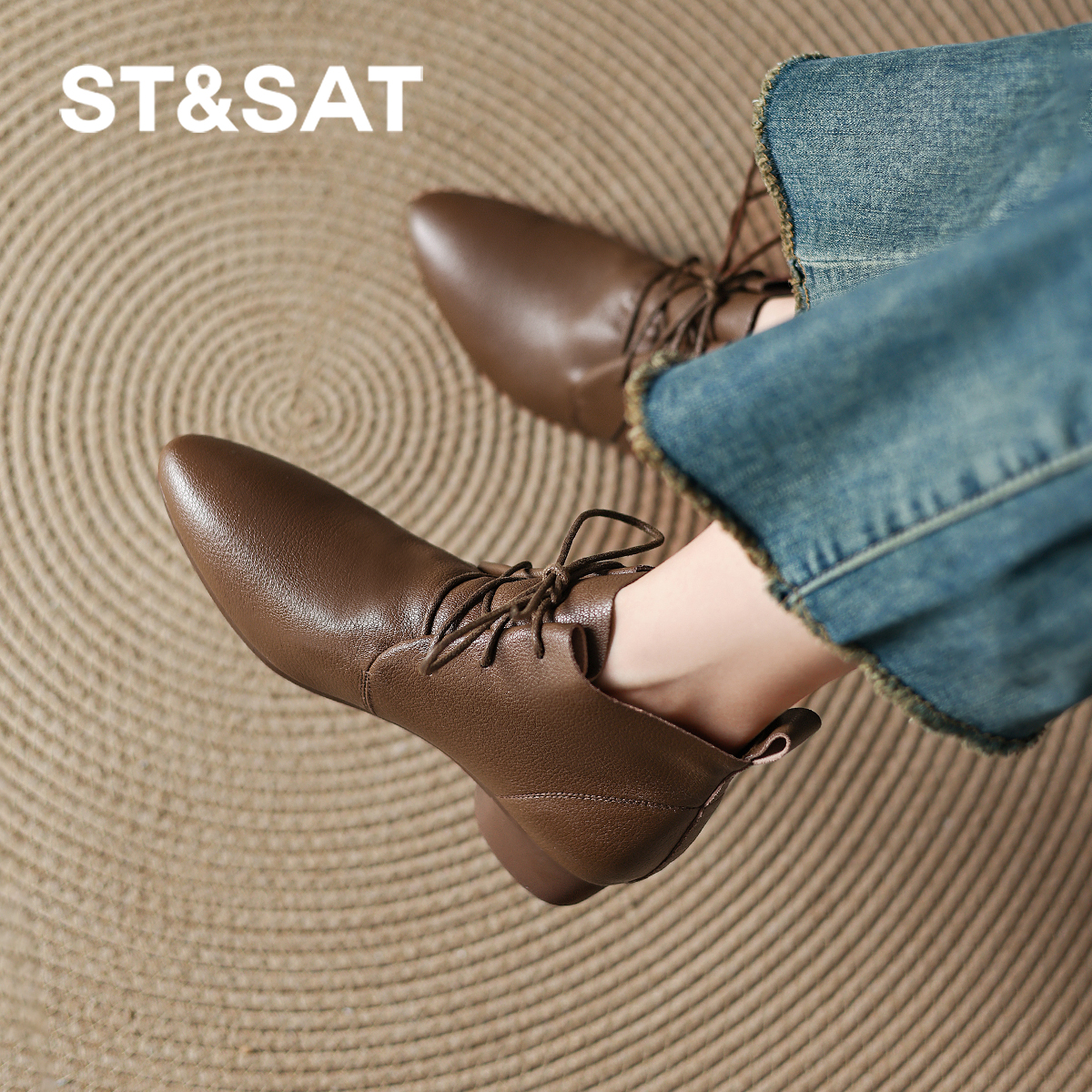 星期六尖头真皮小短靴2025新款女士女款马丁女靴子皮靴早秋季复古