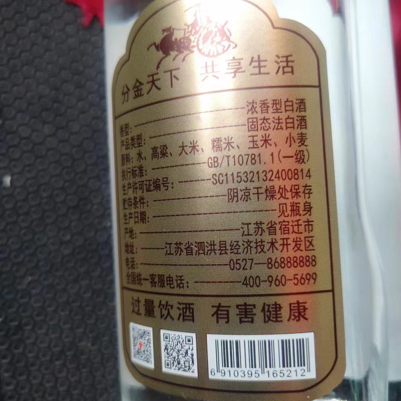 江苏名酒分金亭继酿42度500ML光瓶装口粮酒纯粮食白酒浓香型固态