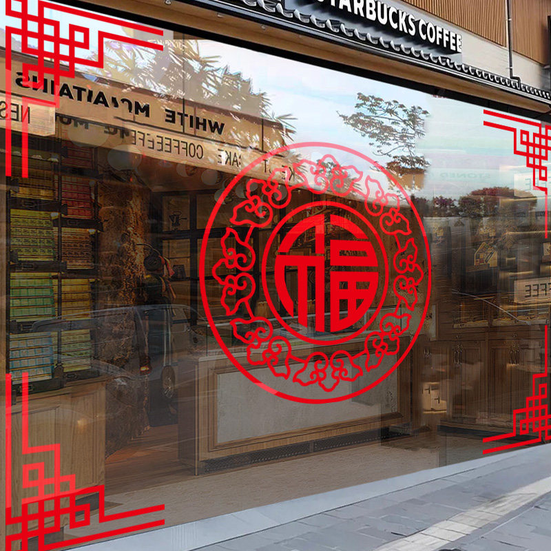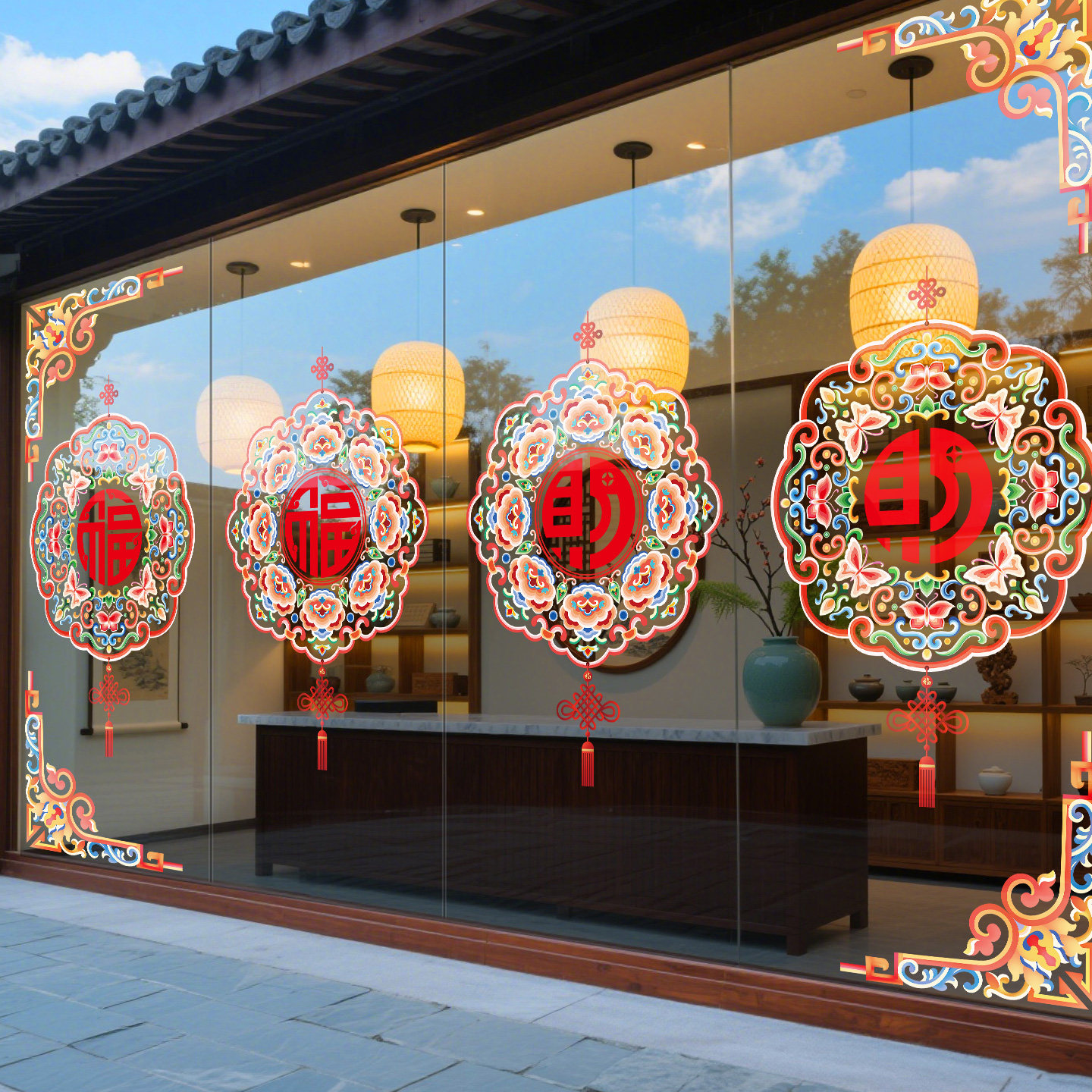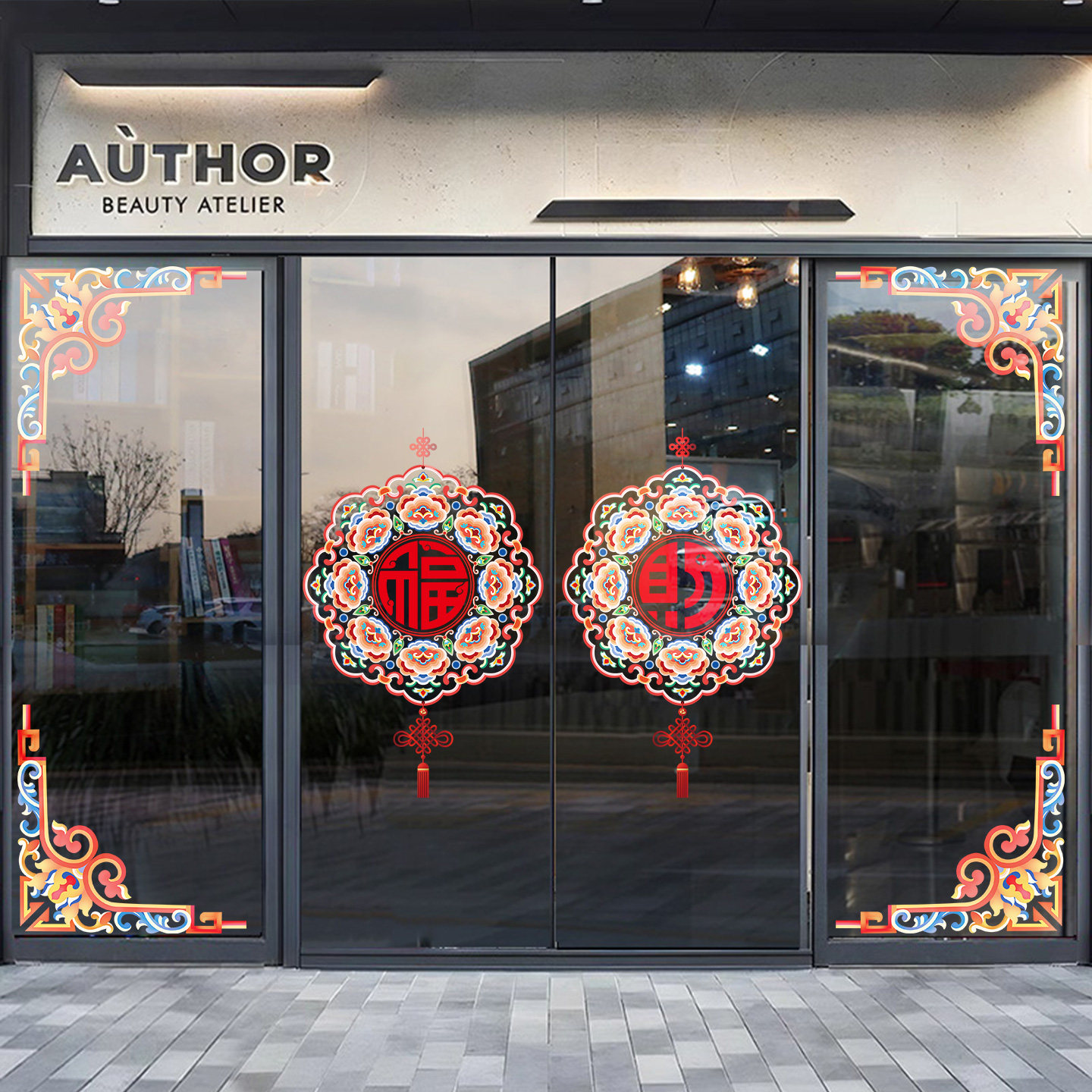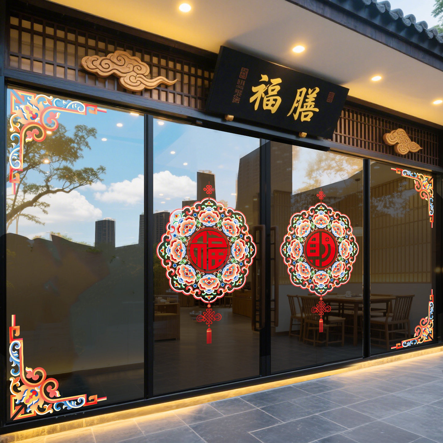 国潮风新年装饰窗花中国风门贴2026马年财福字玻璃贴纸中式静电贴