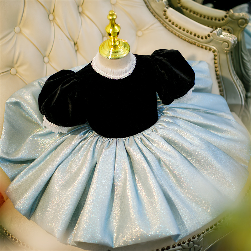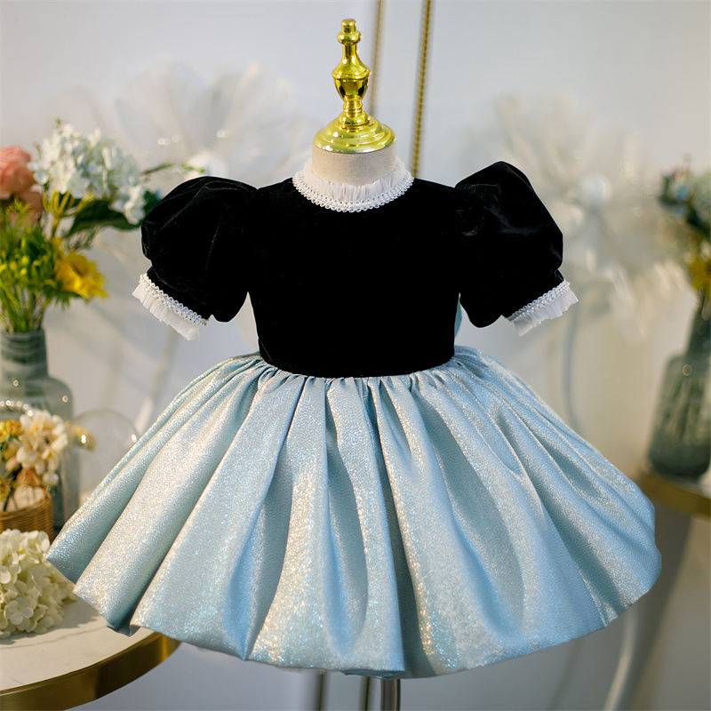 轻奢赫本风宝宝生日礼服女童蓬蓬公主裙女童连衣裙春秋2023新款