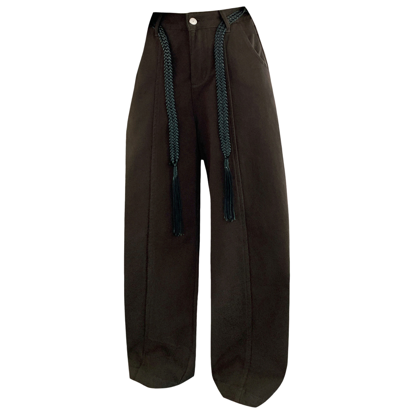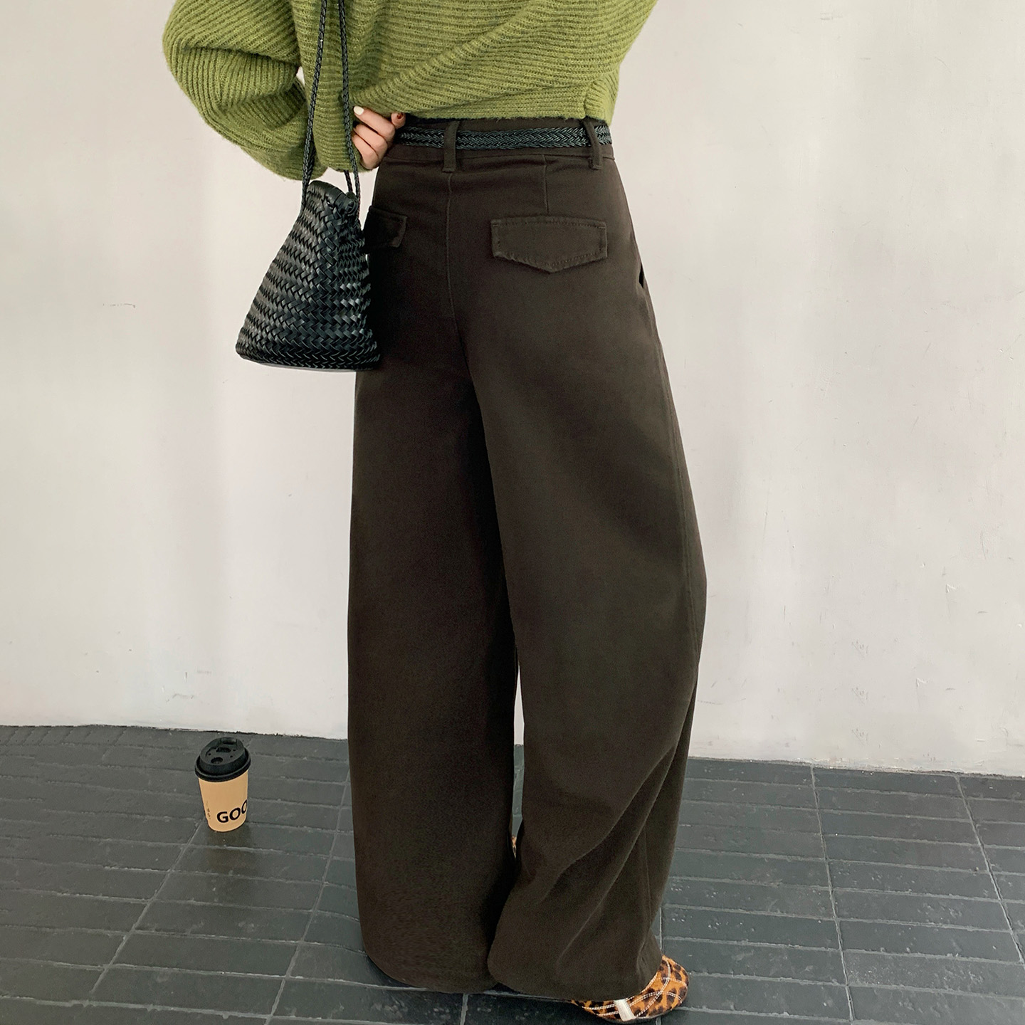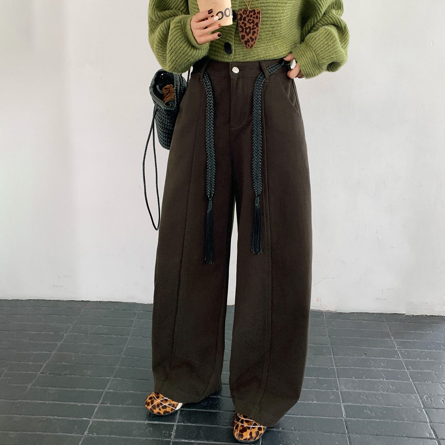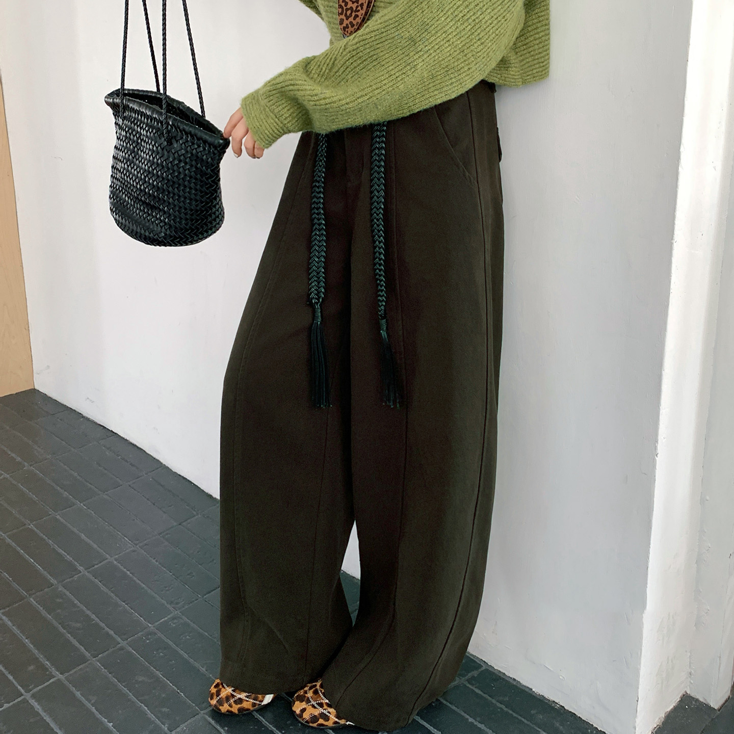 秋冬军绿色宽松女牛仔阔腿弯刀裤