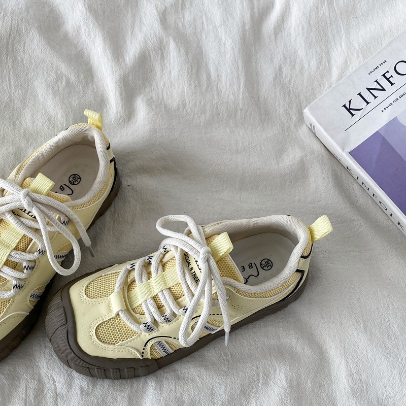 喜叔 丑萌黄色厚底德训鞋女款chic小众不撞款板鞋复古休闲运动鞋