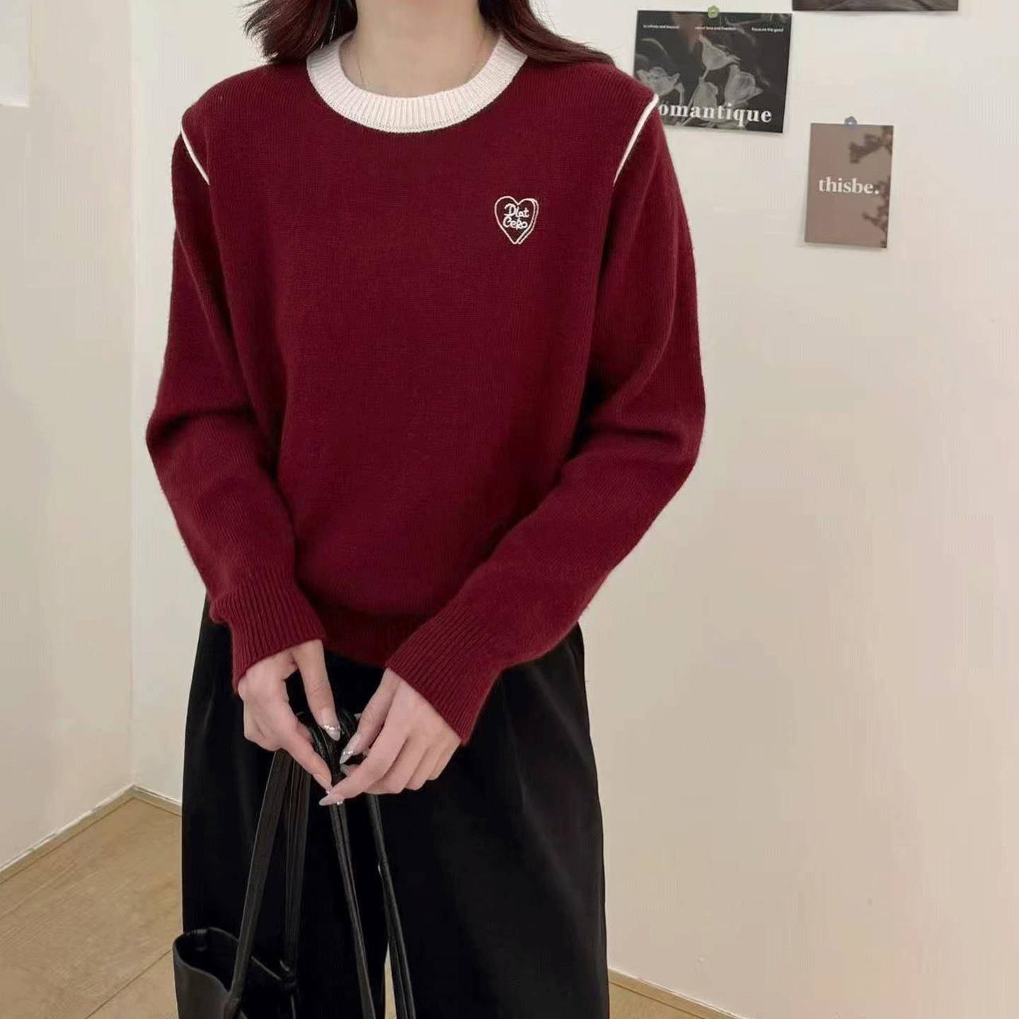 秋冬女士宽松红色毛衣女款2025新款针织打底衫内搭上衣1014e