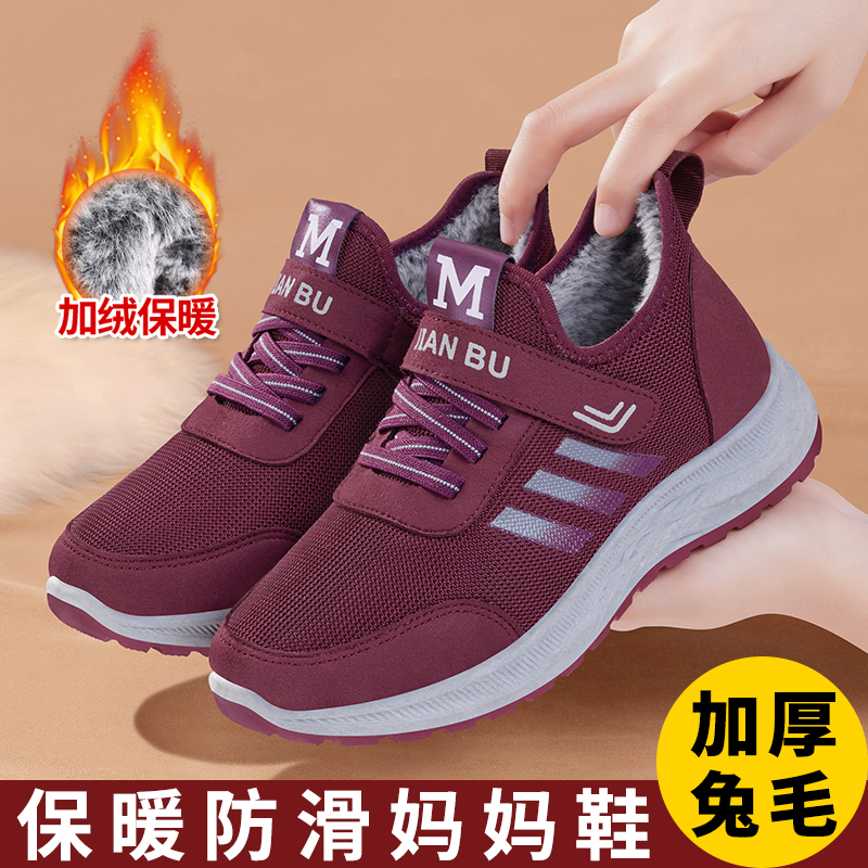 老北京布鞋女冬加绒2025新款中老年保暖舒适老人防滑软底妈妈棉鞋