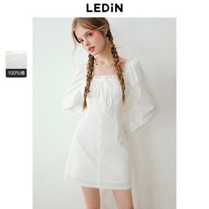 乐町显瘦温柔修身连衣裙年春季新款方领小A裙气质长袖衬衫裙