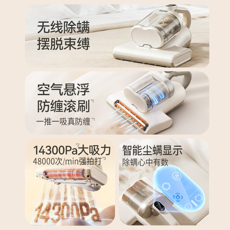 苏泊尔无线除螨仪家用床上吸尘器大吸力双杯尘螨紫外线杀菌除毛