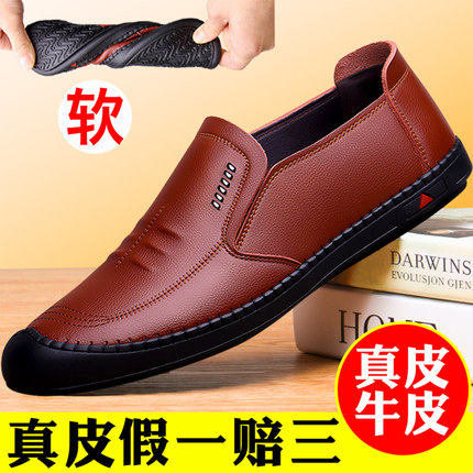 男士皮鞋男真皮休闲鞋一脚蹬男鞋新款棕色爸爸鞋牛皮软底鞋子男款