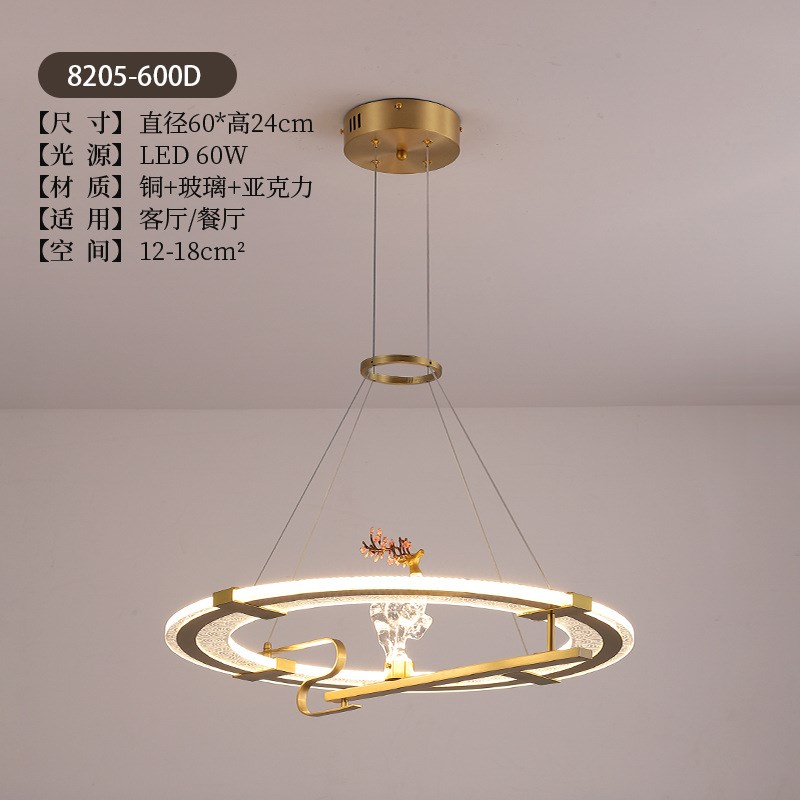 新款全铜新中式吊灯小鹿客厅灯现代简约餐厅卧室灯饰轻奢灯具
