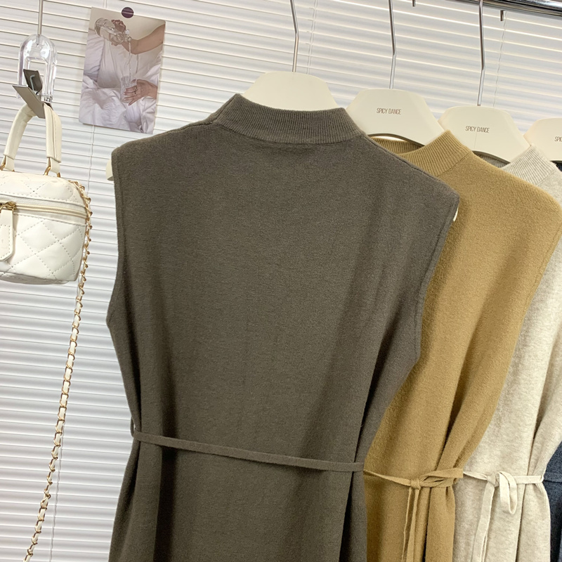2025秋季新款显瘦长款连衣裙气质女神范高级感洋气系带收腰背心裙