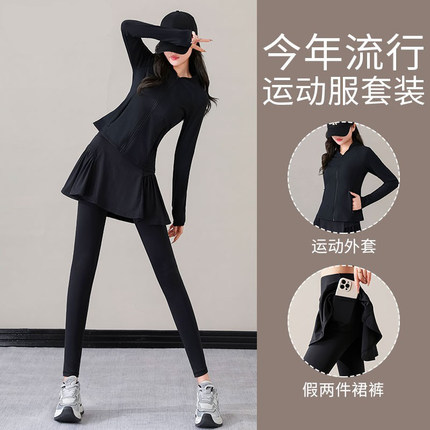运动健身套装女秋冬季2026新款长袖修身衣跑步外套羽毛球瑜伽裙裤