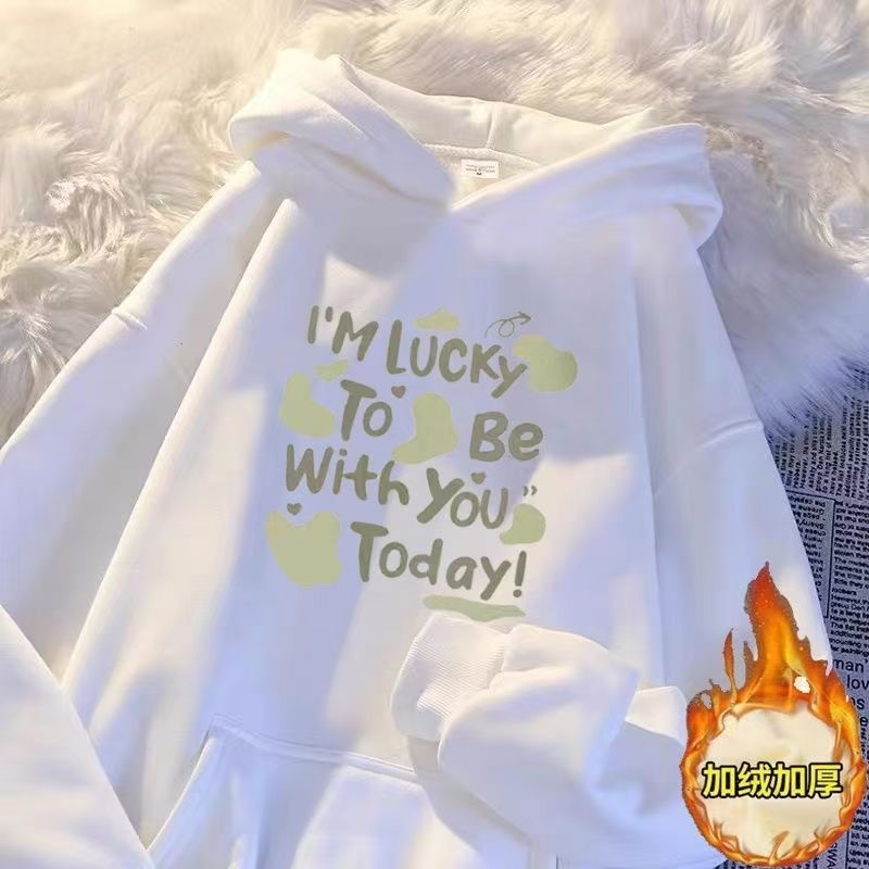 2025秋冬新款女童连帽卫衣宽松字母印花学生加绒加厚休闲上衣外套