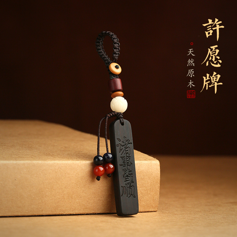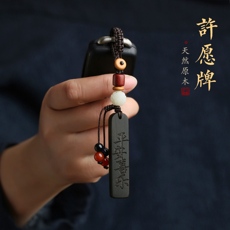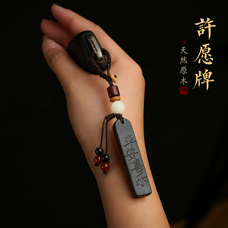 许愿牌檀木汽车钥匙挂件刻字高档男女士防丢电话号码牌复古钥匙扣