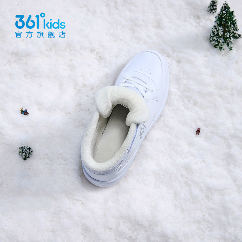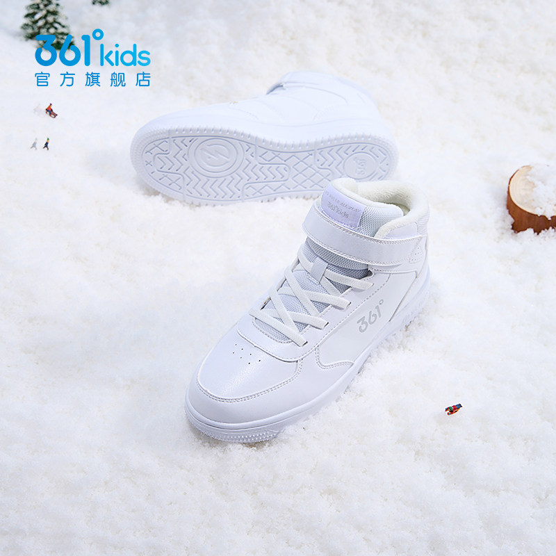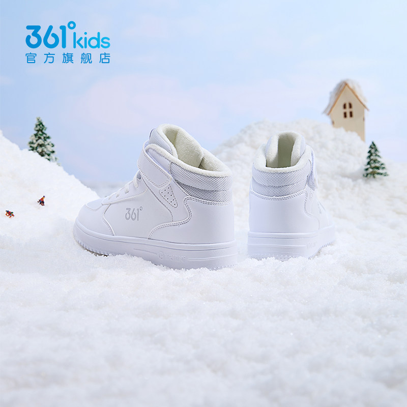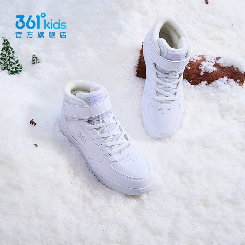 361童鞋儿童棉鞋男童板鞋冬季款加绒高帮白色运动鞋女童二棉鞋子