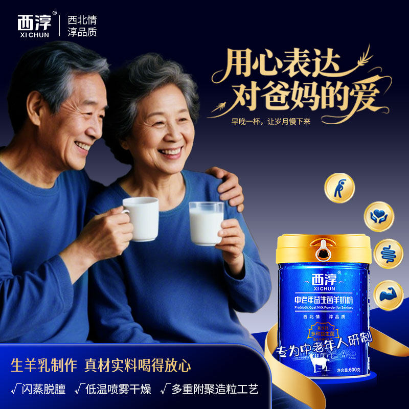 【西淳旗舰店】中老年益生菌羊奶粉陕西成人老人富含钙羊奶600g罐