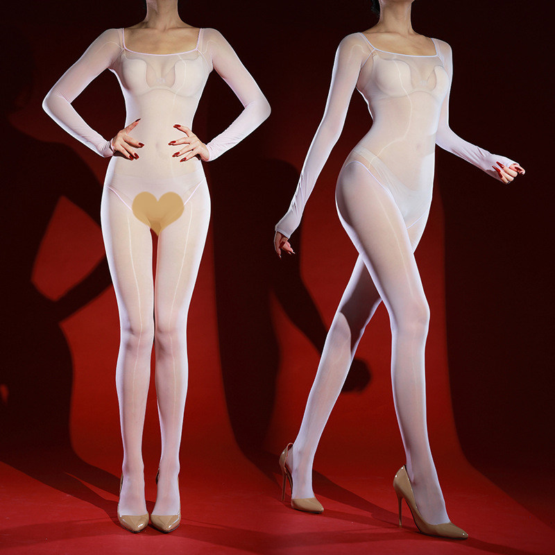 诉吻马油亮光滑全包胸无缝裆一字领连身袜连体衣JJ套男女开档丝袜