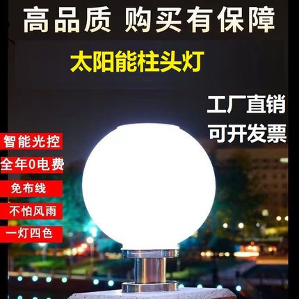 圆球庭院灯太阳能柱头灯户外防水大门柱子围墙新农村led不碎球形