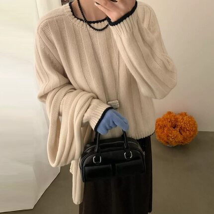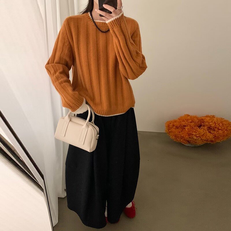 100%纯羊毛衫女2025秋冬新款圆领坑条毛衣长袖内搭羊绒针织打底衫