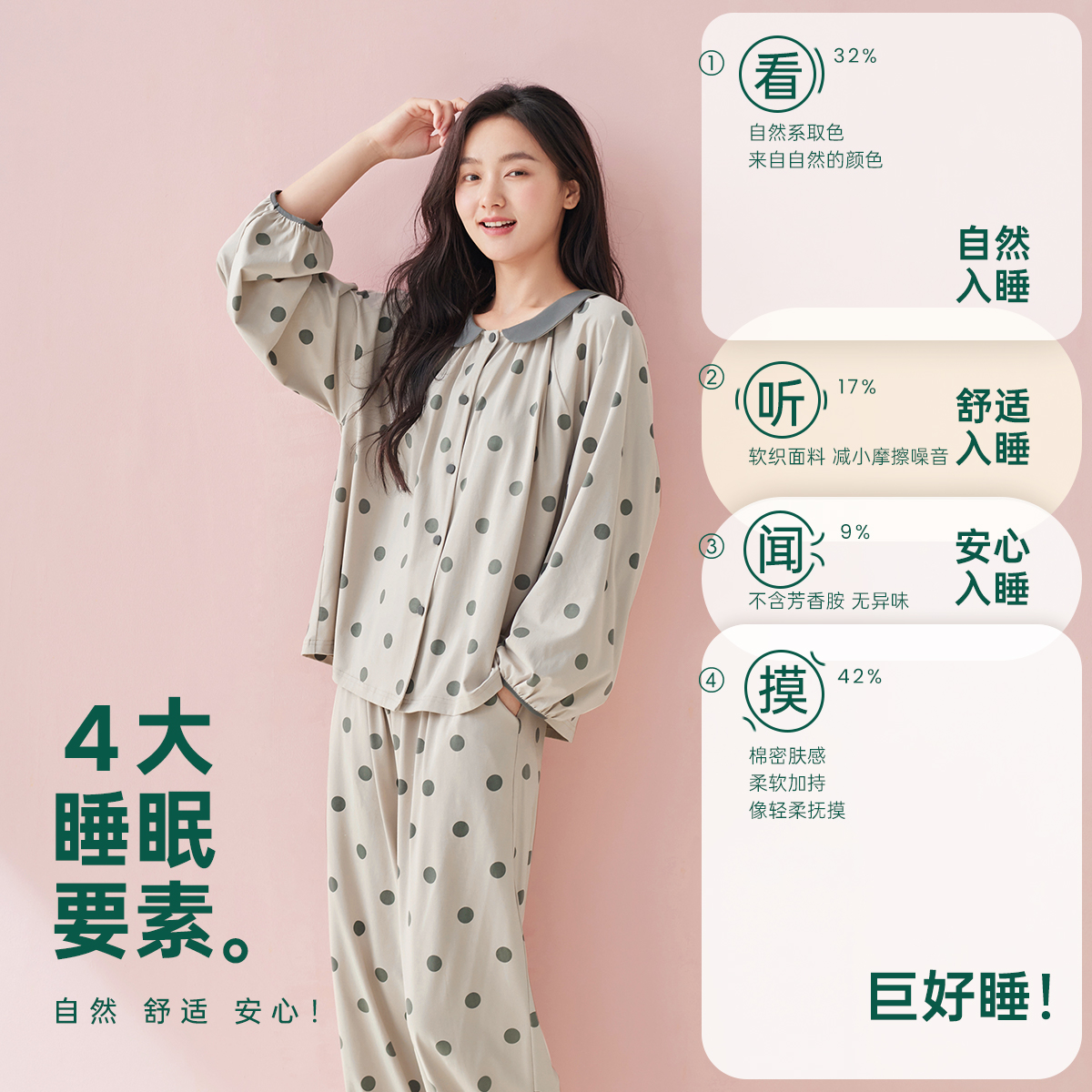 安之伴春秋纯棉娃娃领甜美家居服