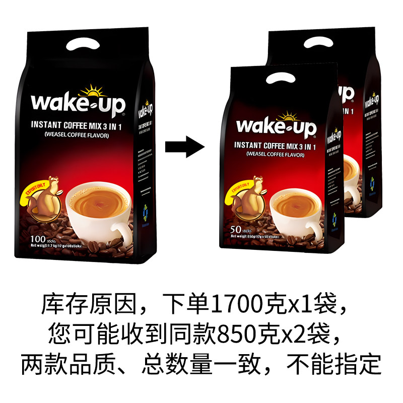 越南进口威拿wakeup猫屎咖啡味100条三合一速溶咖啡粉1700g提神