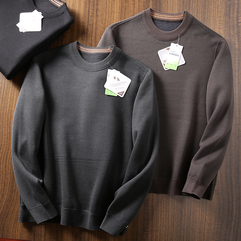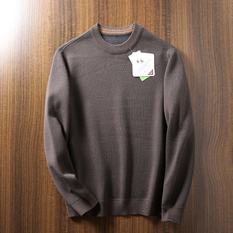绵羊毛混纺!加绒加厚!冬季男士时尚保暖圆领纯色休闲针织衫毛衣