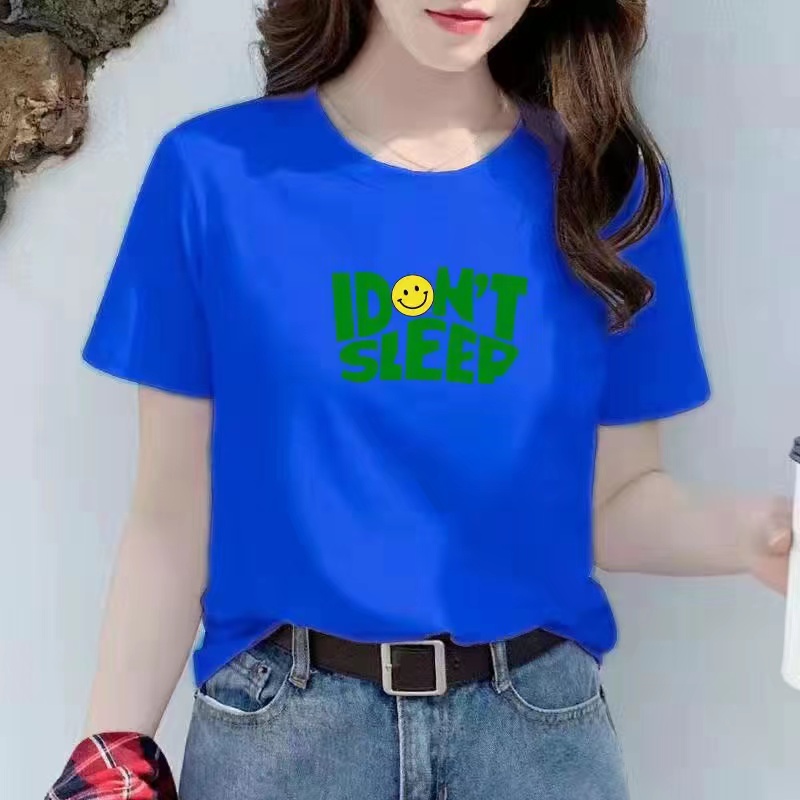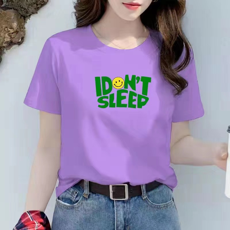 正肩纯色简约白色彩色短袖t恤女夏季春秋纯棉圆领上衣 字母笑脸