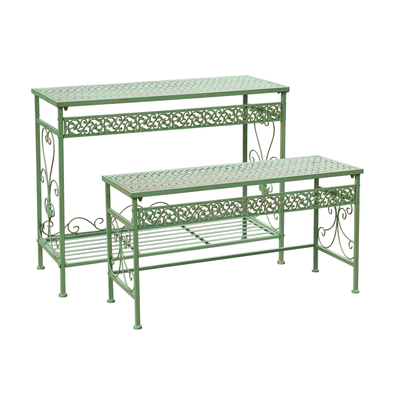 美式铁艺双层花架户外庭院阳台花园植物展示架落地式多肉置物架