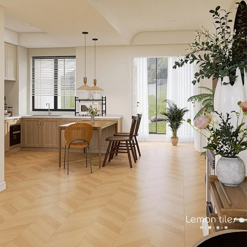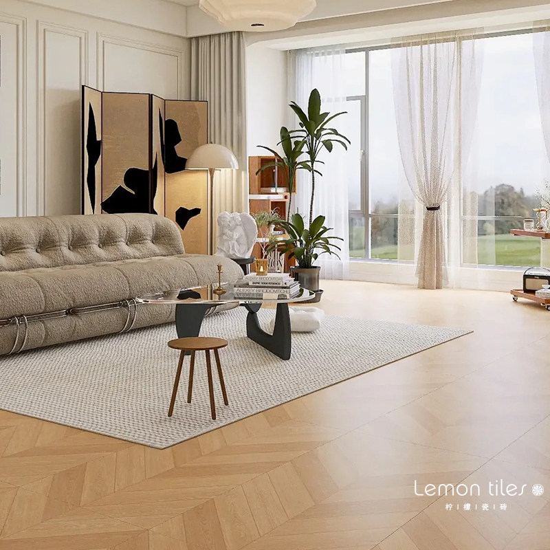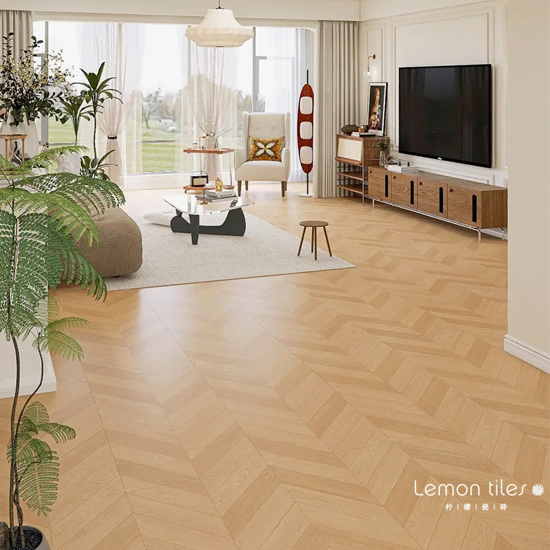 柔光天鹅绒鱼骨纹木纹瓷砖法式复古卧室客厅仿实木砖