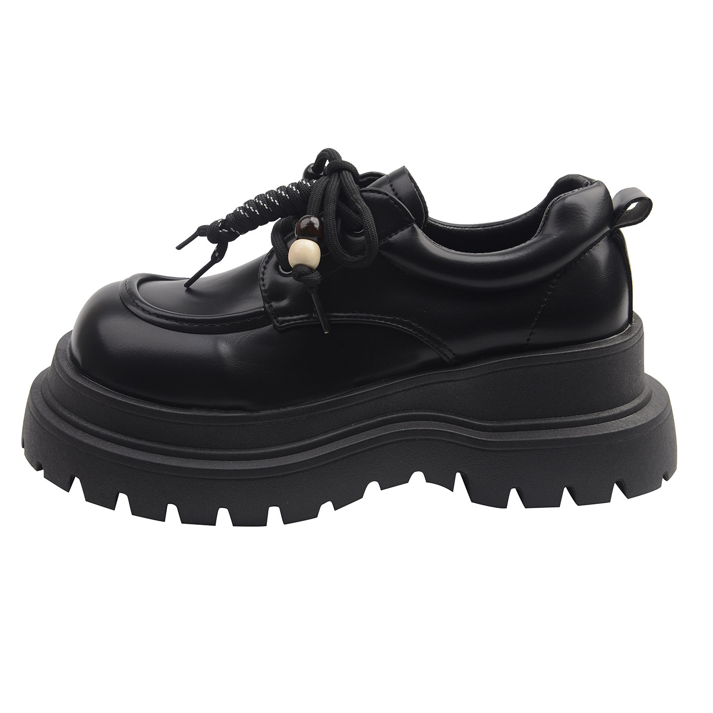 百搭黑色小皮鞋女秋冬季松糕单鞋