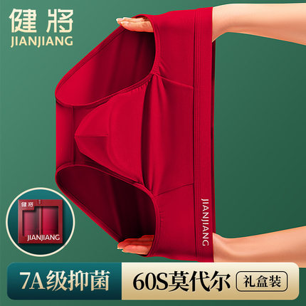 健将男士内裤红三角裤男生莫代尔抗菌本命年酒红色属蛇结婚短裤男