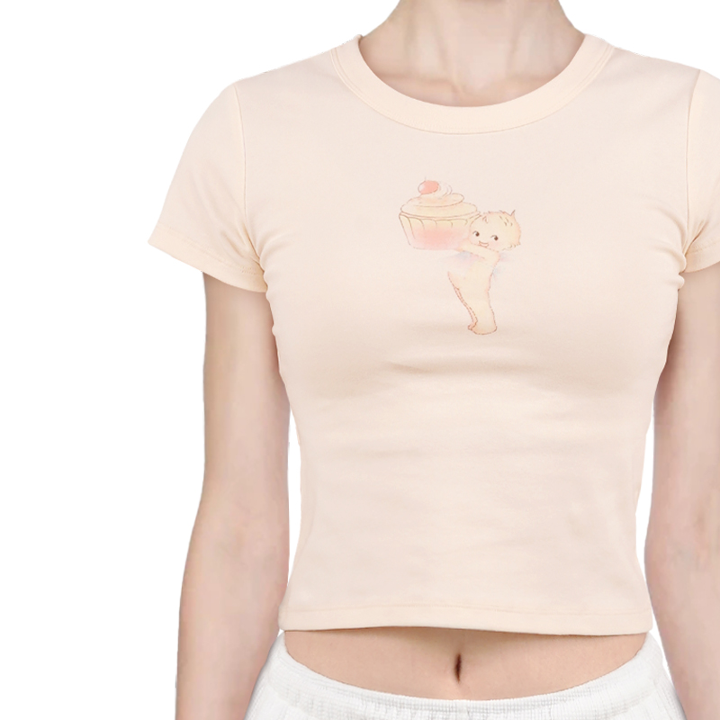 BM上衣短袖T恤女2025新款夏季短款纯欲风少女奶呼呼天使蛋糕短袖
