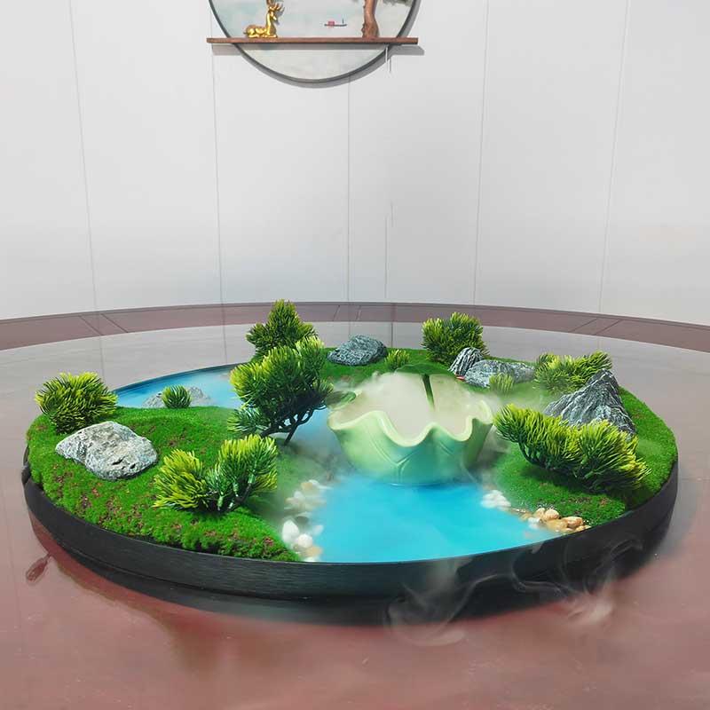 餐桌中间摆花喷雾化流水灯光遥控桌摆转盘花摆圆桌芯装饰盆景花瓶