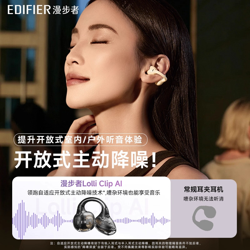 漫步者Lolli Clip AI版耳夹式蓝牙耳机不入耳开放式降噪运动新款