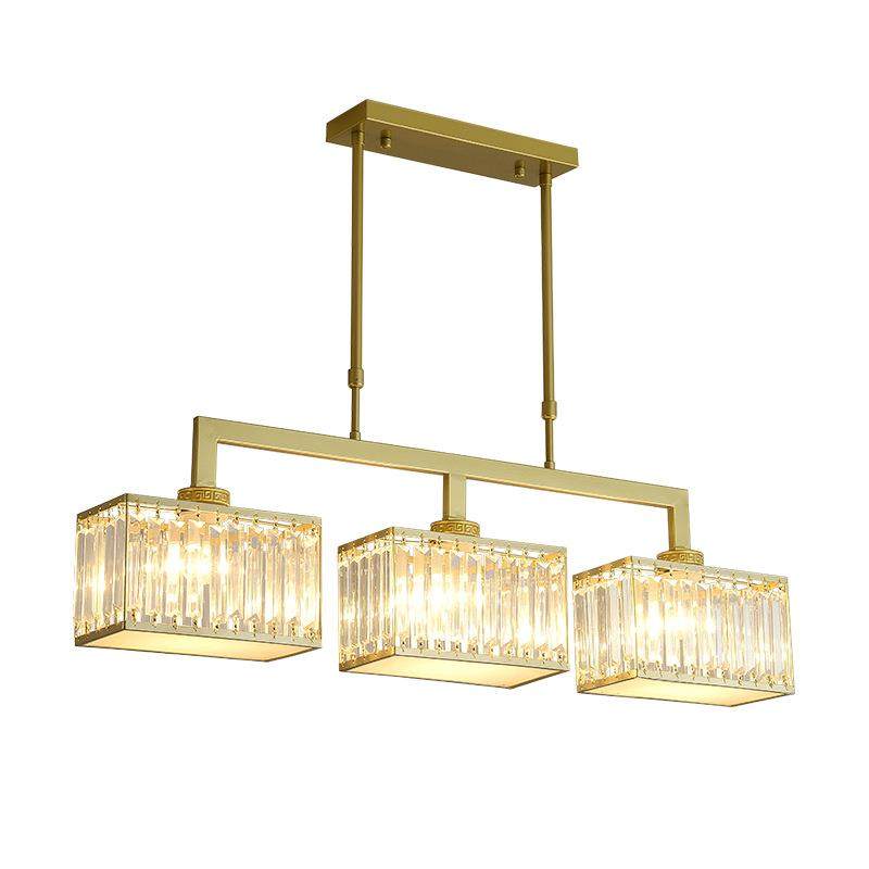 新中式餐厅吊灯三头长方形饭厅灯现代简约创意水晶灯吧台吊灯具