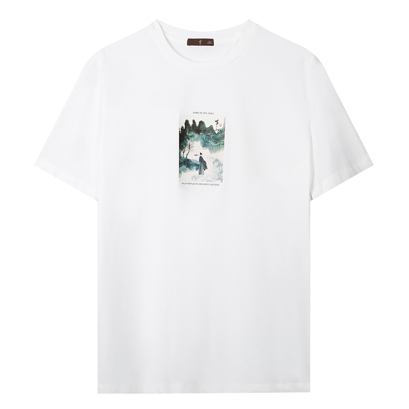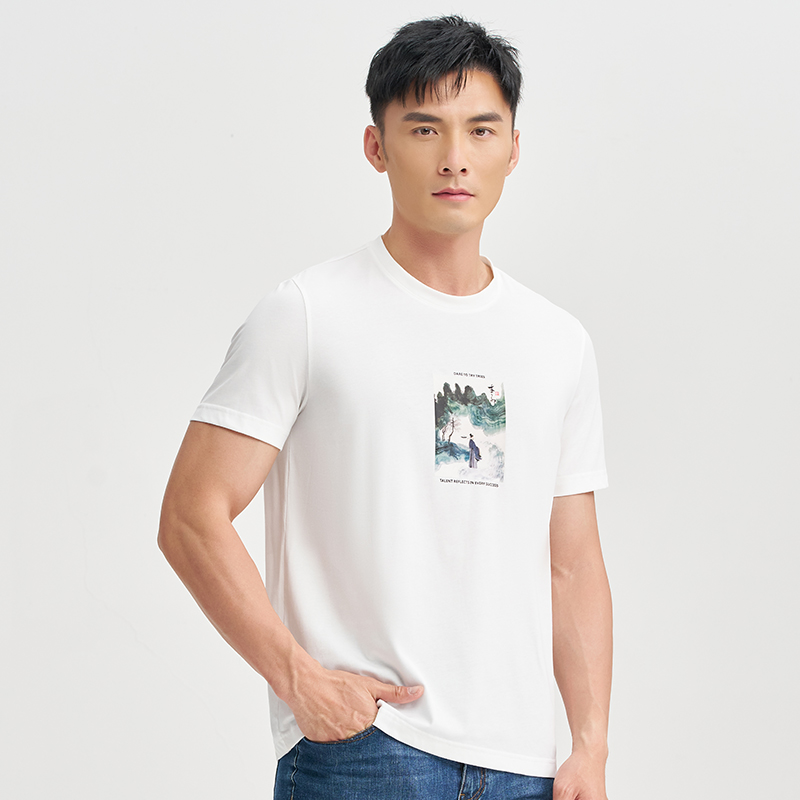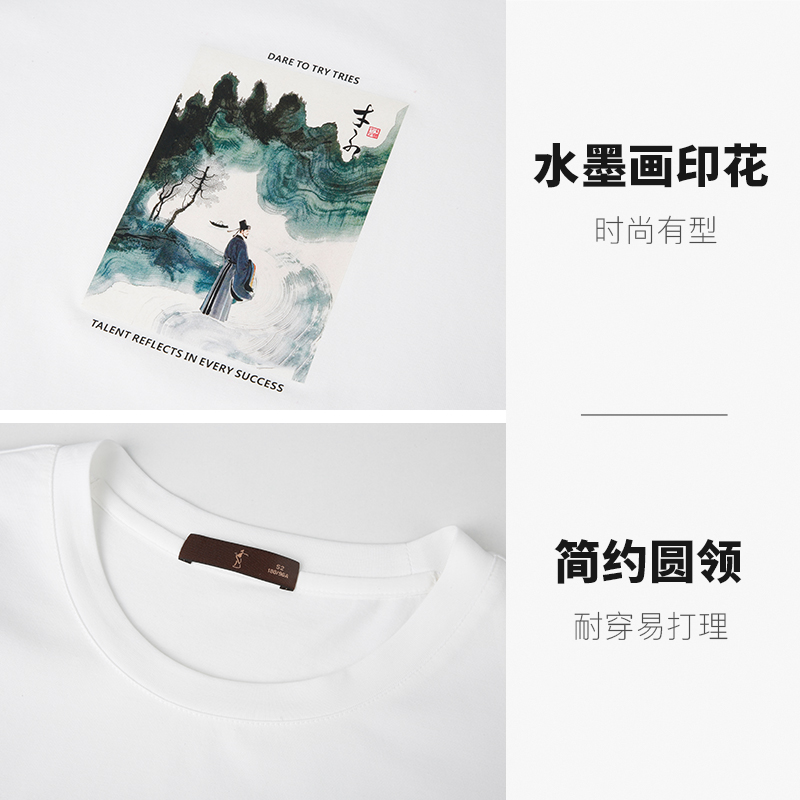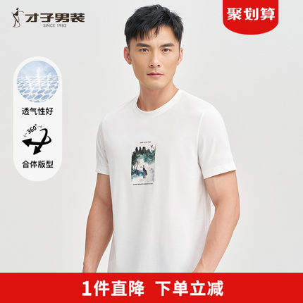 才子男装中国风短袖T恤男2025夏季新款透气国潮印花休闲半袖上衣