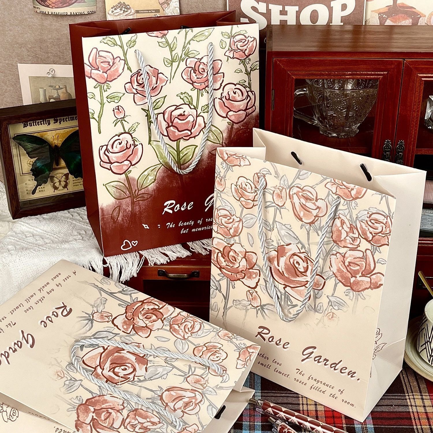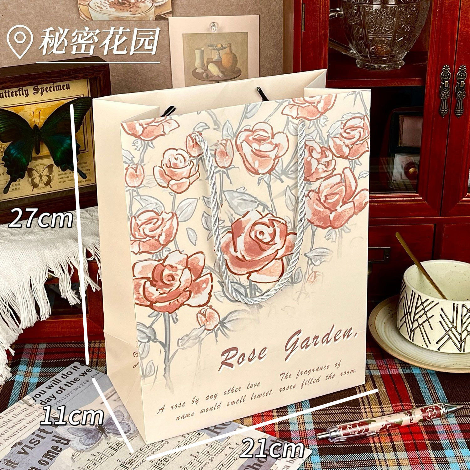 浪漫复古风玫瑰花园礼品袋送礼生日表白高级精美手拎手提袋