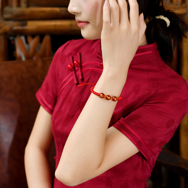 2026年红玛瑙三合生肖红绳手链女本命马年生肖属鼠红手绳猴鼠龙男