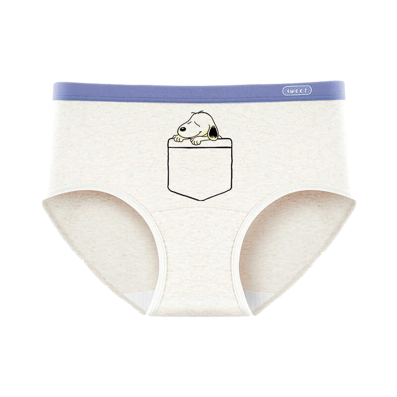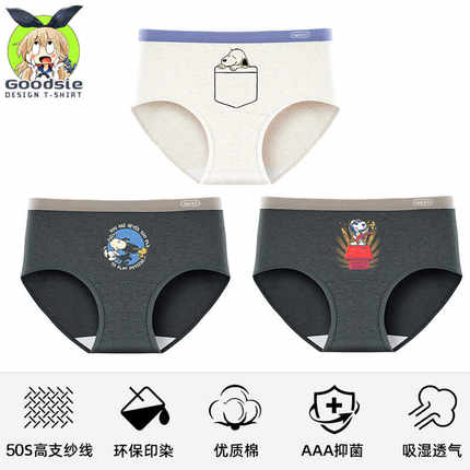 甜美史努比比格犬联名专柜新款米白卡通全纯棉质印花三角内裤女士